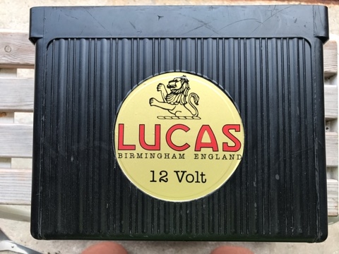 Jag var ju lite besviken att mitt nya bakelitbatteri var anpassat för en rund dekal, jag hade ju tidigare skaffat en rektangulär Lucas dekal för det var det korrekta enligt vad jag fått fram.