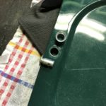 Tog en tur ut i garaget och sparka lite på däcken och försökte komma på något att göra vid bilen, kom då på fästen till en av sidoluckorna inte satt fast då jag saknade aluminiumhylsorna som håller fast låsfästen.